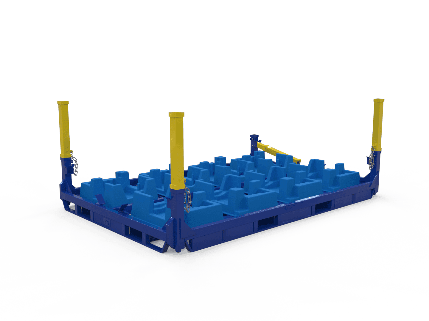 Construídos em aço de alta resistência e com acabamento em pintura eletrostática, os racks oferecem durabilidade superior e proteção contra desgastes. Sua estrutura permite fácil movimentação com empilhadeiras e paleteiras, além de possibilitar o empilhamento vertical, maximizando a utilização de áreas de armazenagem.